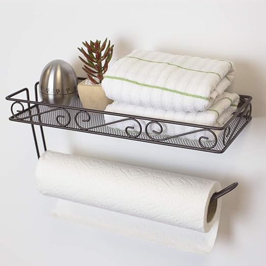 Amazon Com Paper Towel Holder With Shelf Storage Wall Basket For