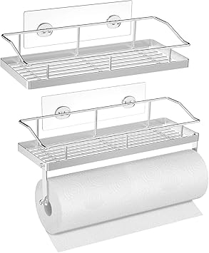 2020 Adhesive Paper Towel Holder With Shelf Grid Hanging Basket