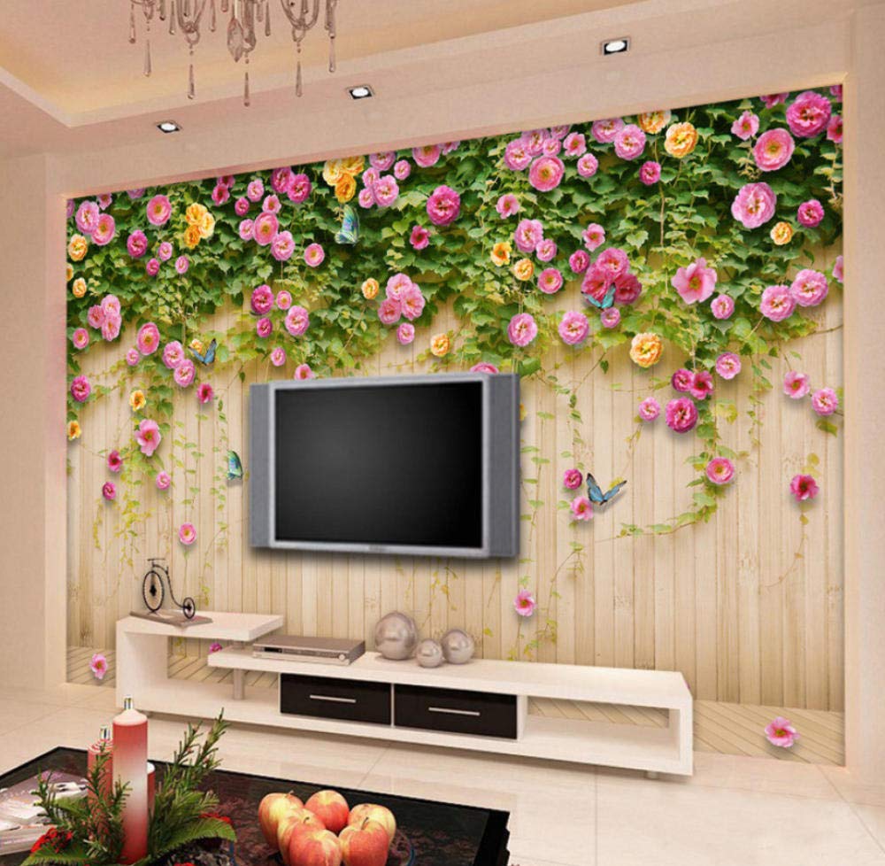 Amazon Com Yynight Mural Wallpaper Green Vine Butterfly Rose