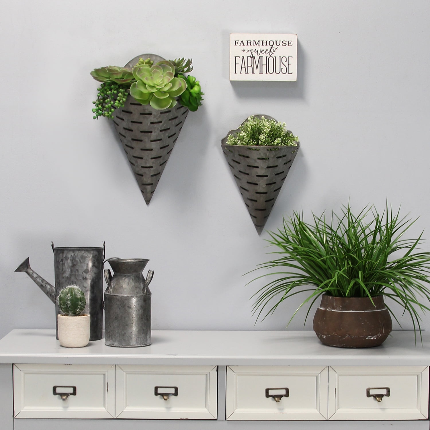 Set Of 2 Galvanized Metal Wall Planter Farmhouse Home Decor Sconce