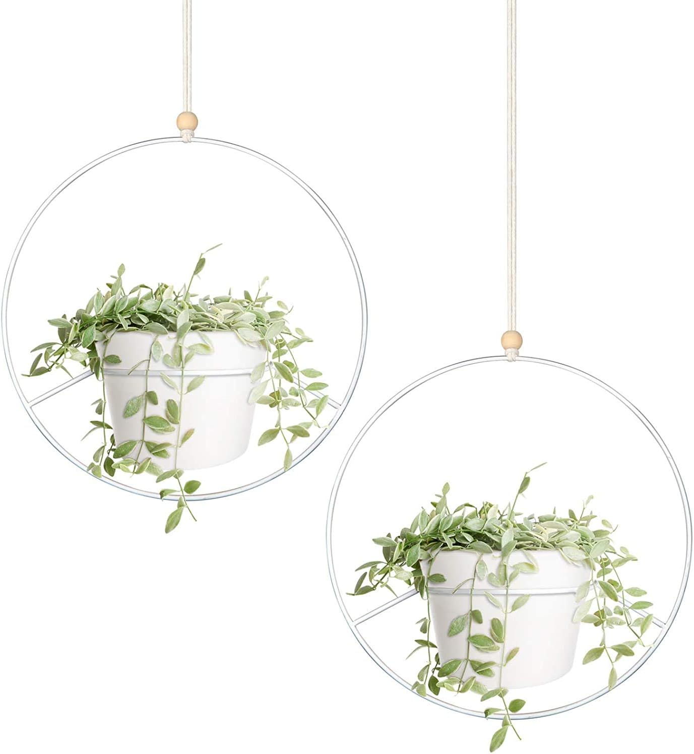 Mkouo Boho Hanging Planter Set Of 2 Round Metal Plant Hanger With