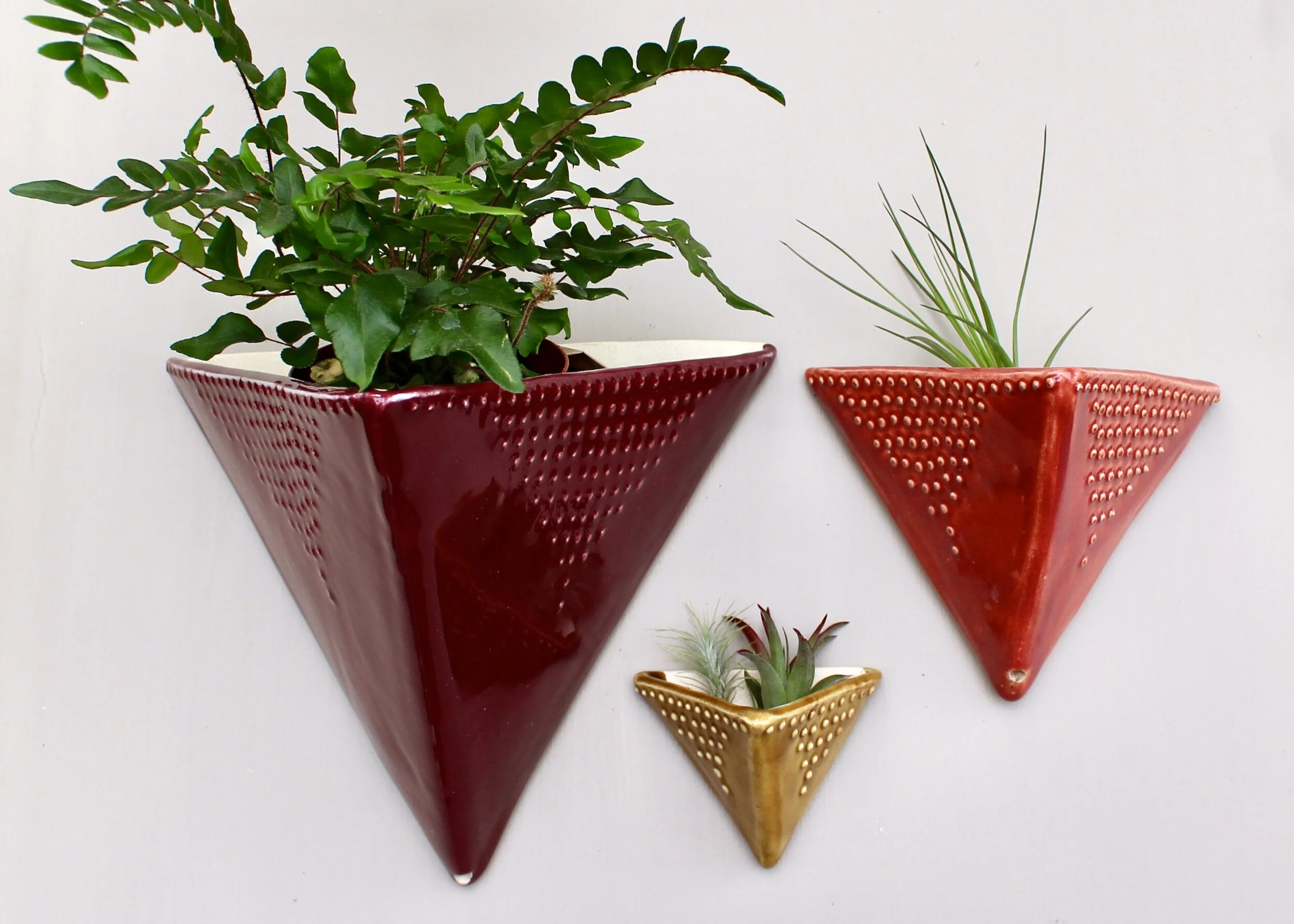 Ceramic Wall Planter Geometric Wall Decor Set Of 3 Hanging Planter