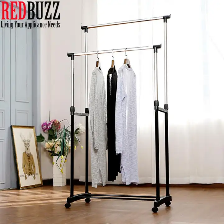Redbuzz Double Pole Adjustable Stainless Steel Cloth Hanger And Organizer Drying Rack Clothes Rack Lazada