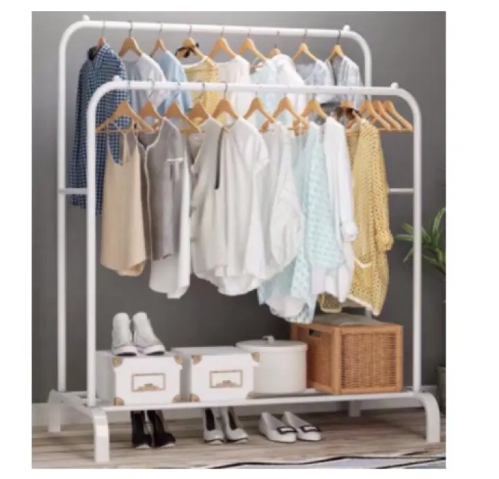 Diy Double Clothes Hanging Rack Cloth Shoe Wardrobe Closet Storage Organizer Drying Shelf Mulig Rak Penyidai Baju Shopee Malaysia
