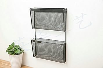 Amazon Com Lecent 3 Pocket Wall Mount Literature Rack Organizer Silver Steel Mesh Storage Baskets Metal Wall Magazine File Rack Black Office Products