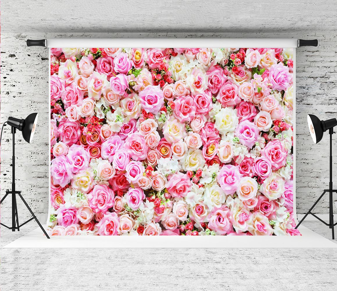 5x7ft Backdrop Rose Flower Wall Wedding Background Banner