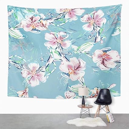 Y Jiang Floral Tapestry Abstract Blue Floral Flower Garden Nature