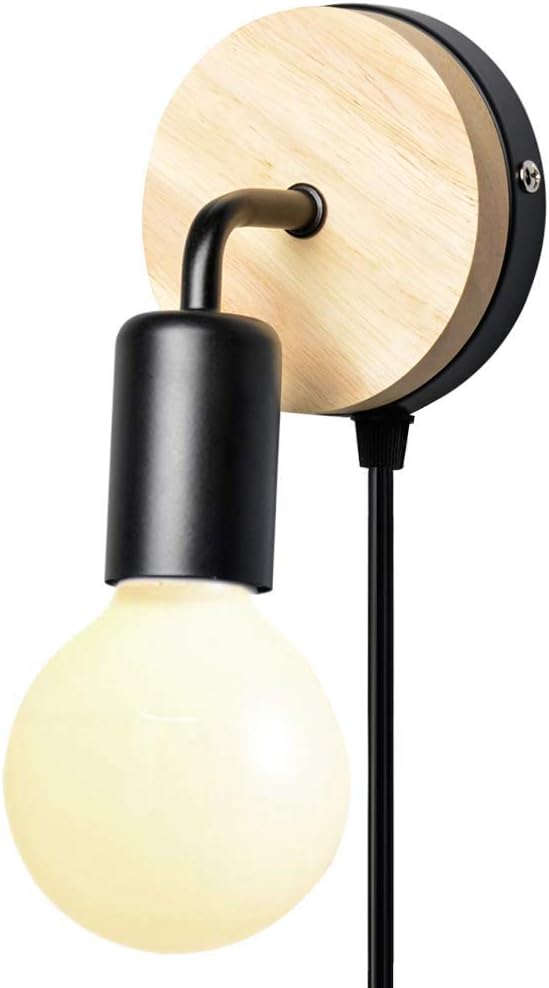 Fsliving Vintage Loft Style Wooden Base Wall Lights Metal Lamp Minimalist Indoor Wall Sconces Uk Plug E27 Lamp Holder Inline Button Switch Lighting For Living Room Bedrooms Bulb Sold Separately Amazon Co Uk Lighting
