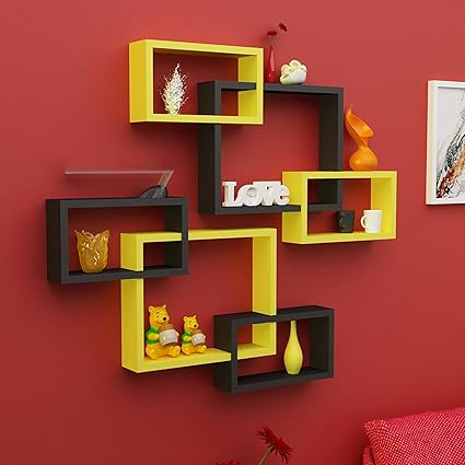 Jgs Mdf Wall Mount Intersecting Floating Shelves For Living Room Office Hall Set Of 6 Yellow Black Amazon In Home Kitchen