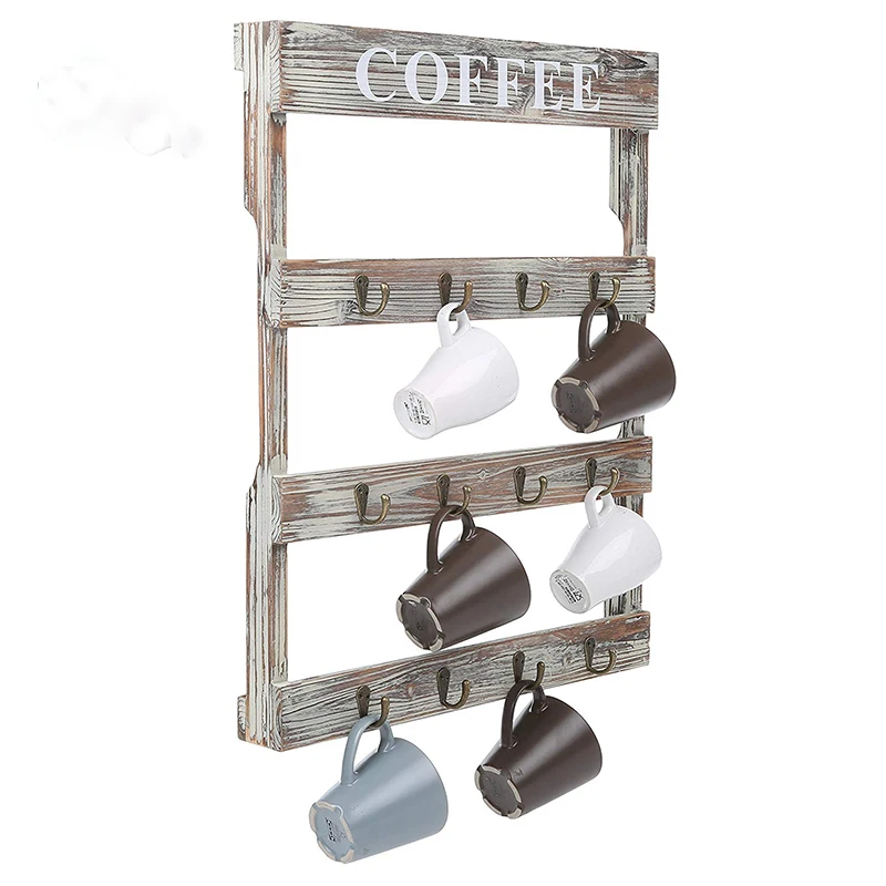 Wall Mounted Torched Wood Coffee Mug Rack Mygift