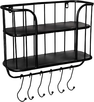 Amazon Com Farmhouse Shelf With Towel Bar And Hooks Coffee Bar Wall Shelf Rustic Style Black Metal Rack For