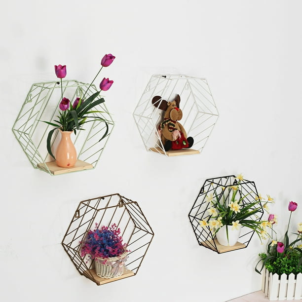 Wood Metal Wall Shelves Shelf Retro Style Storage Hexagon Design