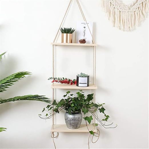 Wood Hanging Shelf 3 Tier Rustic Wall Swing Storage Rack Jute Rope Floating Shelves Plants Photos Decorations Display For Living Room Bedroom Amazon Co Uk Kitchen Home