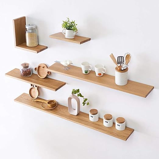 L T Solid Wood Wall Shelves Wall Mounted Set Of 5 Thicken Floating Shelves Decorative Storage Shelves Plants For Kitchen Living Room Nature A Amazon Co Uk Kitchen Home