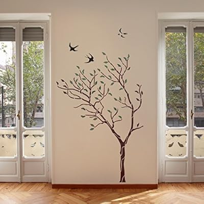 J Boutique Stencils Large Tree With Birds Wall Stencil Reusable