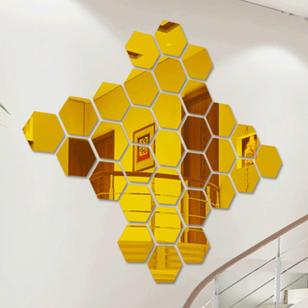 Mirror Wall Stickers 12pcs Hexagon Mirror Art Diy Home Decorative