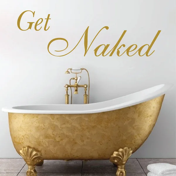 2016 New Arrival Hot Sale Get Naked Funny Quotes Wall Stickers Washing Room Bathroom Vinyl Decals Shower Muraux Tile