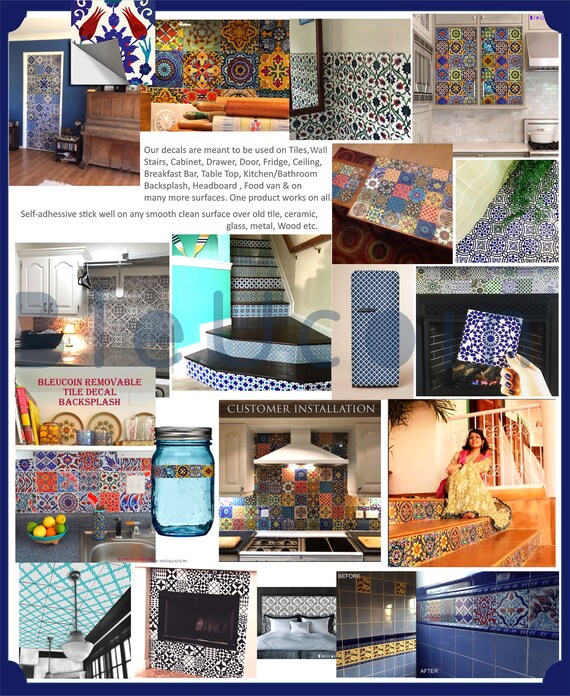 Tile Wall Decal Moroccan Tile Sticker For Kitchen Bathroom Etsy