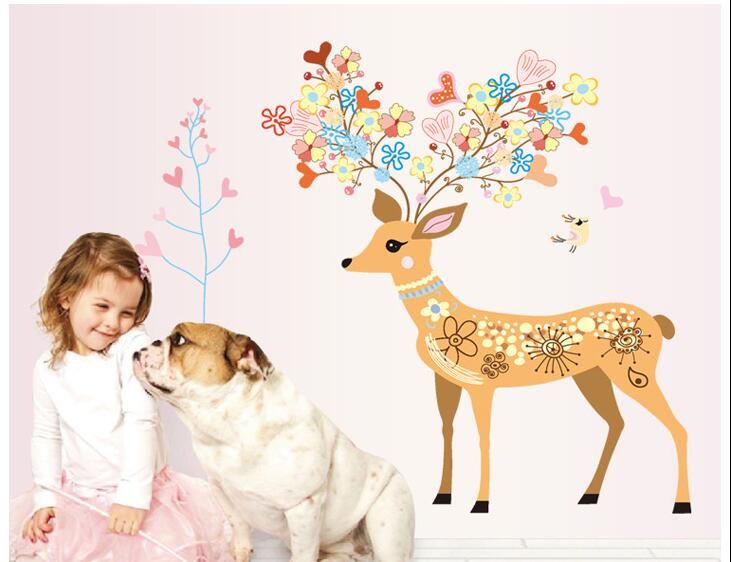 Girls Wall Stickers Animal Deer Furniture Pvc Home Decor Bedroom