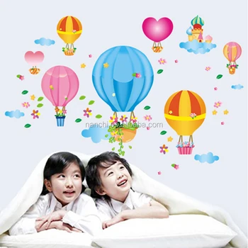 Colorful Flower Heart Hot Air Balloon Wall Stickers For Girls Boys