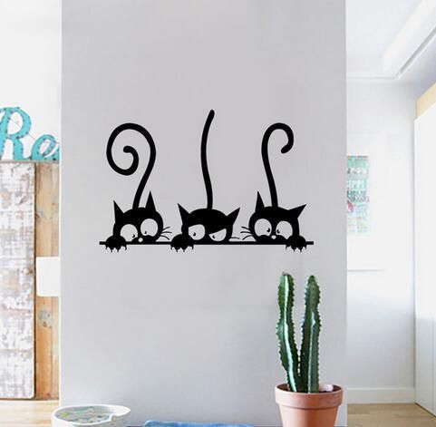 2020 Lovely 3 Black Cute Cats Wall Sticker Moder Cat Wall Stickers