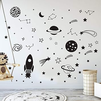 Amazon Com Outer Space Stars Plant Wall Decal Vinyl Astronaut