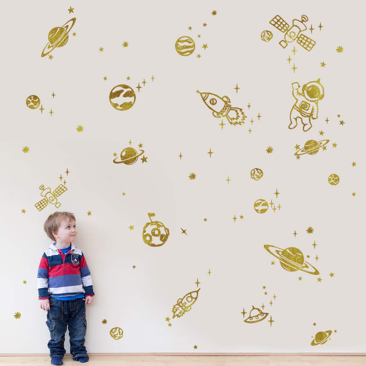 Nursery Decor Decalmile Gold Space Planets Wall Decals Rockets