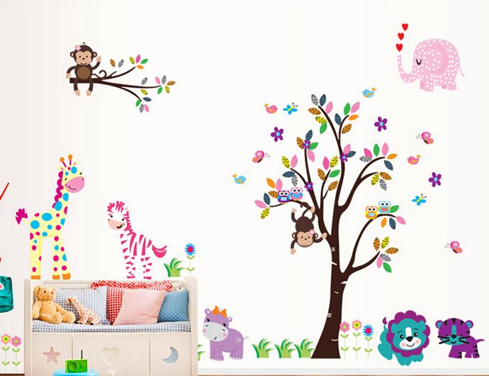 Animals Tree Home Decor Wall Decal Kids Bedroom Children Playroom