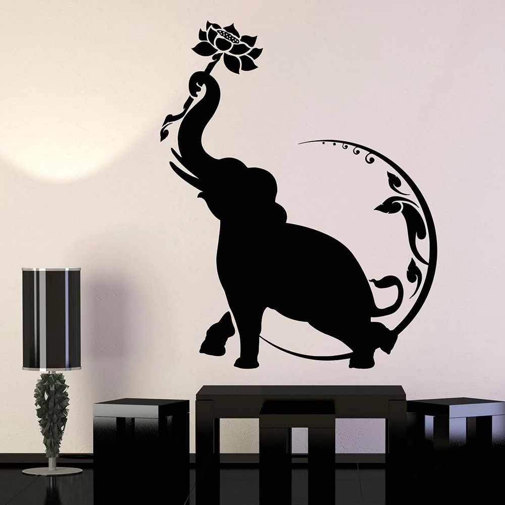 Indian Vinyl Wall Decal Living Room Elephant Lotus Flower Moon