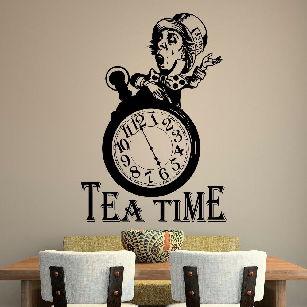 Funny Clock Silhouette Tea Time Wall Stickers For Living Room