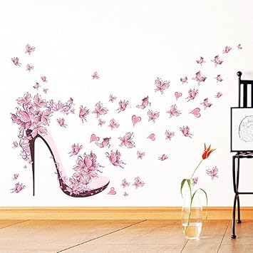 Gemini Mall Pink Butterfly High Heels Wall Art Sticker Door Stairs Living Room Bedroom Decor Woman Teenager Baby Girl Kid Children Nursery Decal Wall Mural Poster Wallpaper Amazon Co Uk Diy Tools
