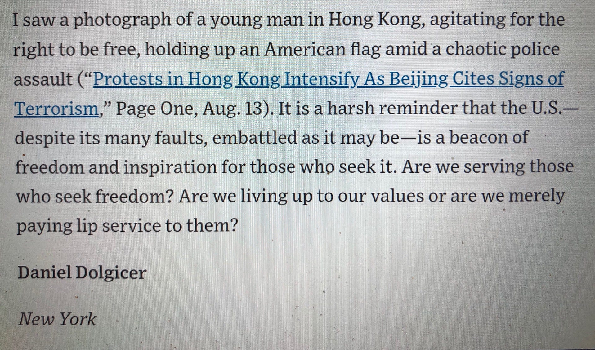 Letter To The Editor Wall Street Journal By Daniel Dolgicer