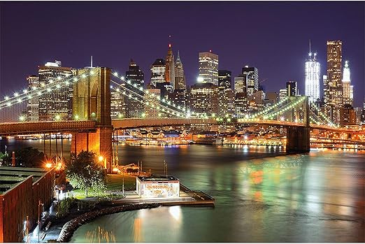 Amazon Com Great Art Poster Brooklyn Bridge At Night Picture