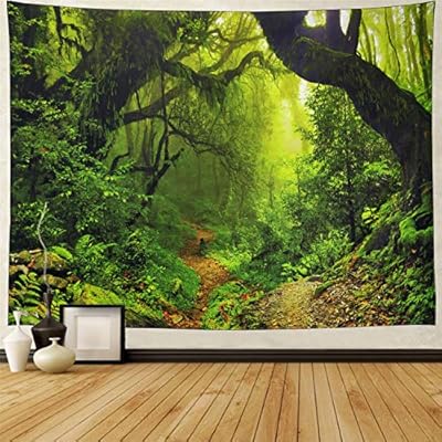 Wall Tapestry Forest Print Tapestries Art Green Scenery Wall