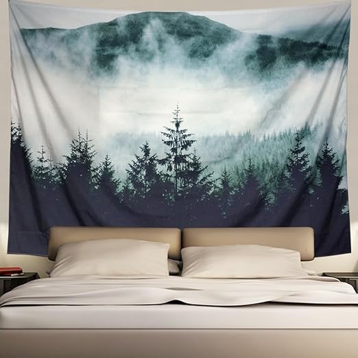 Amazon Com Heopapin Misty Forest With Mountains Tapestry Fog