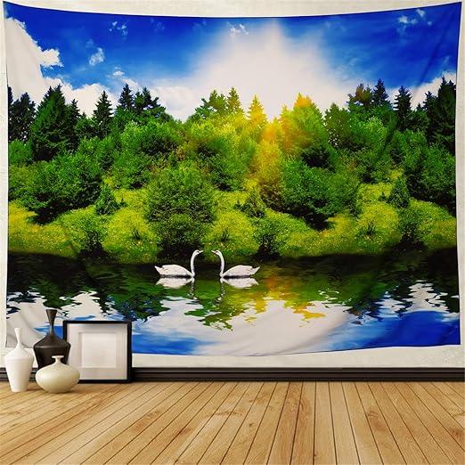 Amazon Com Prabahdak Landscape Tapestry Forest Swan Wall Tapestry