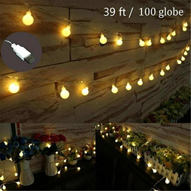Amars Bedroom Garden Usb Fairy Globe String Lights Curtain Window 12m 39ft Frosted White Led Ball String Lights For Party Tapestry Wall Wedding Patio Indoor