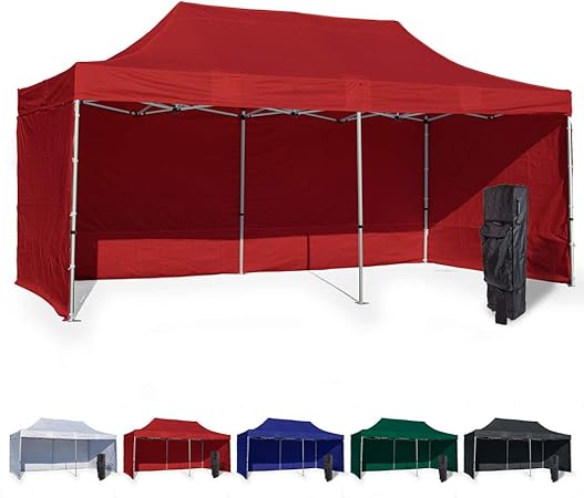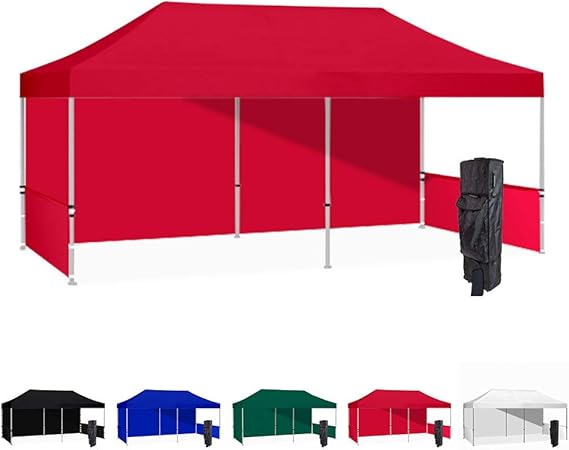 Red 10x10 Instant Canopy Tent With 1 Full Wall And 3 Half Walls