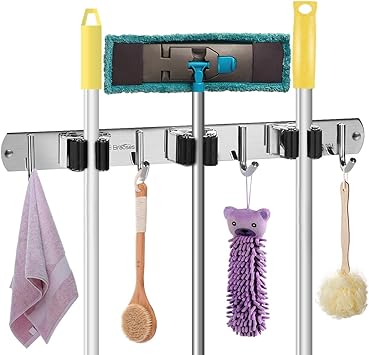 Amazon Com Home It Mop And Broom Holder 5 Position With 6 Hooks