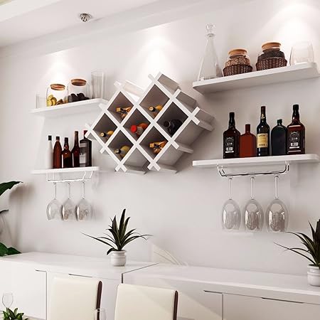 Black White Wall Mount Wine Rack Bottle Holder Champagne Glass