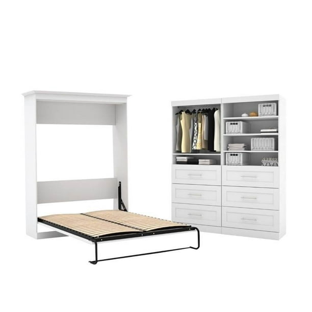 2 Piece Bedroom Set With Storage Unit And Wall Bed In White