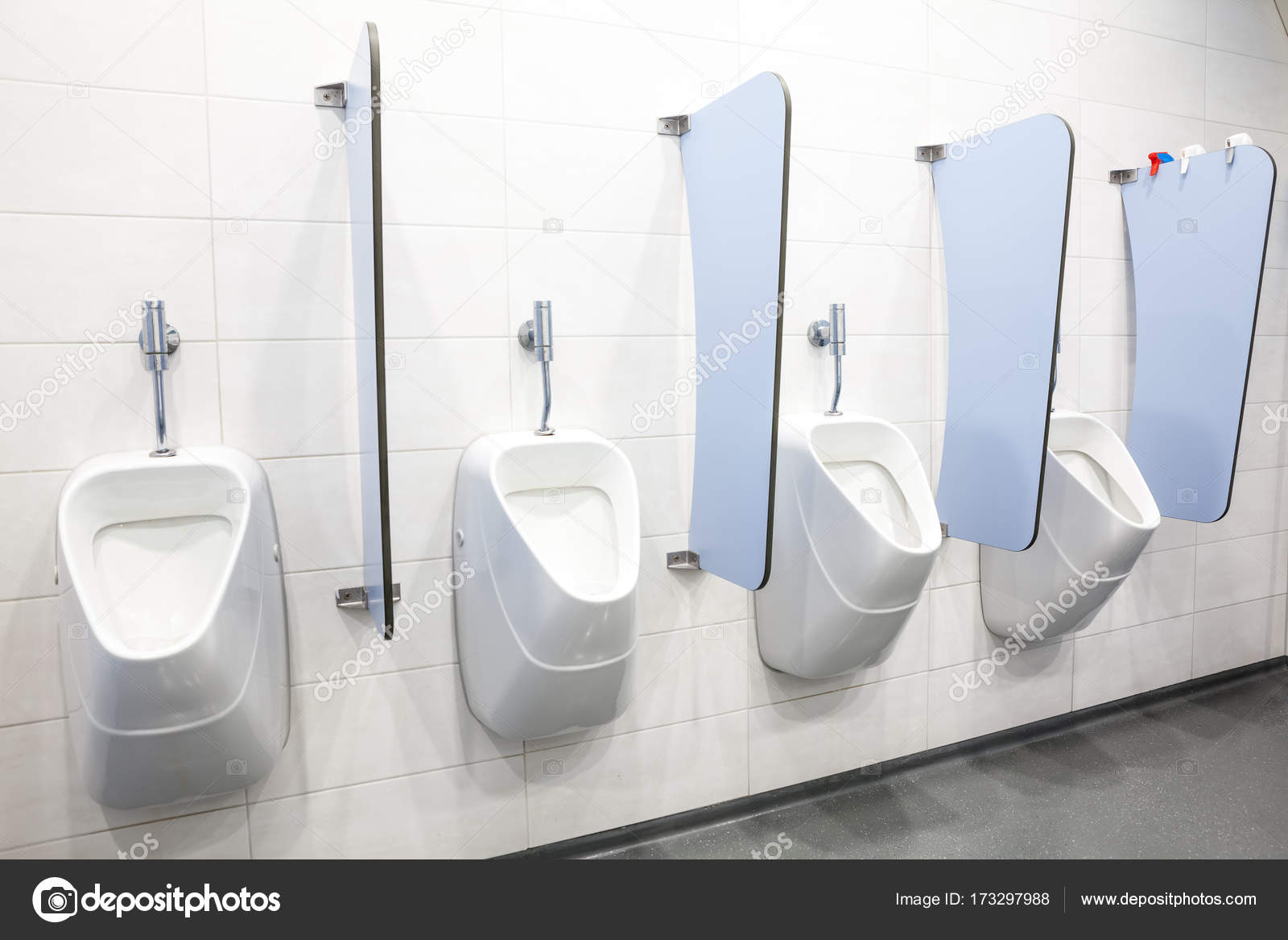 Urinals Are Lined Up On The Wall Toilet For Men Stock Photo