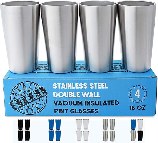 Amazon Com Real Deal Steel Stainless Steel Pint Glasses Double