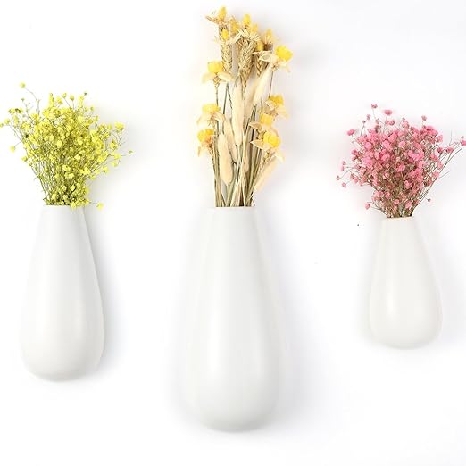 Set Of 3 Teardrop Ceramic Wall Vase Wall Mounted Ceramic Planter Pot White Ceramic Wall Decor Indoor Amazon Co Uk Garden Outdoors