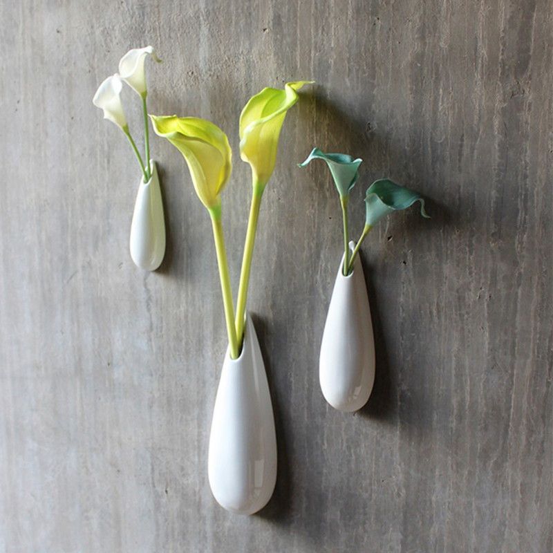 Set Of 3 Teardrop Ceramic Wall Vase White Wall Mounted Ceramic Planters Indoor Art Wall Decoration Home Decor Wall Decor Decoration Homehome Decor Aliexpress