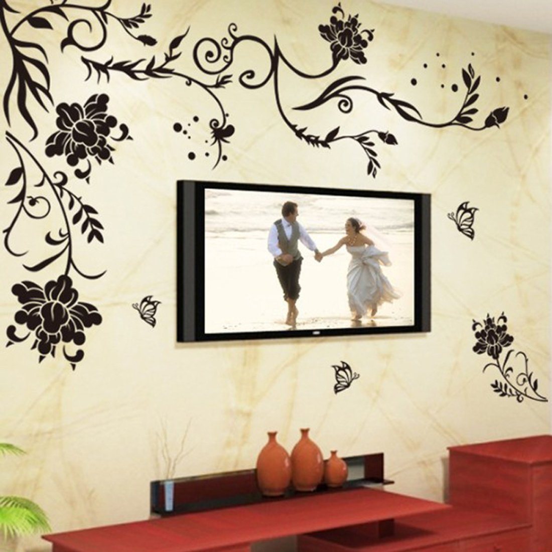 Classical Black Vines Butterfly Diy Mural Removable Wall Sticker Room Home Decor Shopee Indonesia