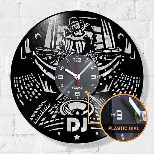Amazon Com Dj Vinyl Wall Clock Vinyl Record Art Home Party Interior Time Decor Wall Clock Graphic Vinyl Decor Unique Art Design Handmade Music Gift Idea Dj Wall Decor Dj Clocks