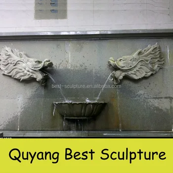 China Garden Antique Carved Stone Wall Water Fountain For Sale