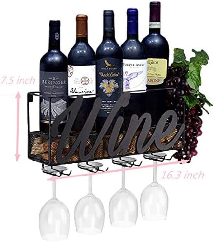Black Wall Mounted Wine Rack Storage Bottle Glass Holder Bar