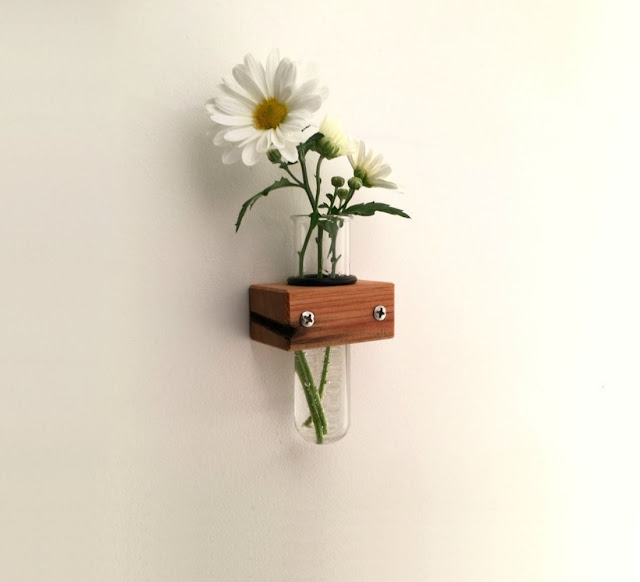Wall Mount Test Tube Wall Vase Modern Wood Small Wall Flower Vase